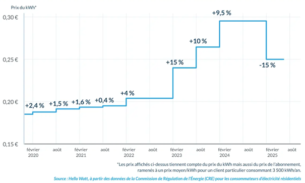 Le tarif de base, tout inclus, pour un ménage reste en moyenne à 25 c€/kWh