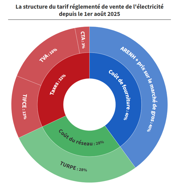 Le coût de la fourniture représente 40% d’une facture d’électricité. Cette quote-part était déterminée par l’AREHN à 42€ et le marché de gros.